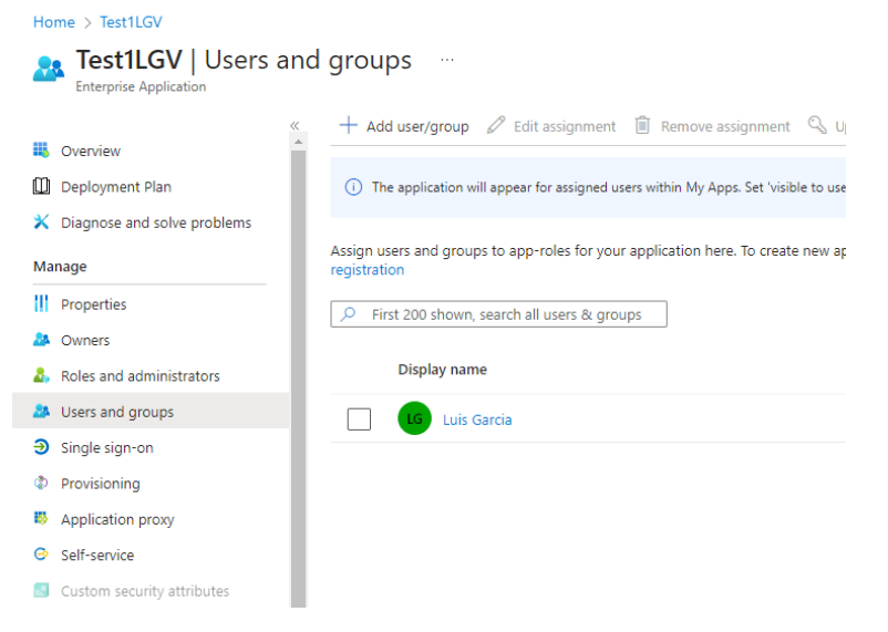 Do not forget to assign people to your just created integration app. To do it, select the *Users and Groups* tab and include people/groups as needed.
