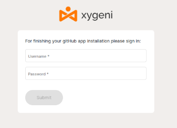 * Now, the installation will redirect you to the browser where you have to log in into your Xygeni account, so we can link your app installation with your Xygeni account.