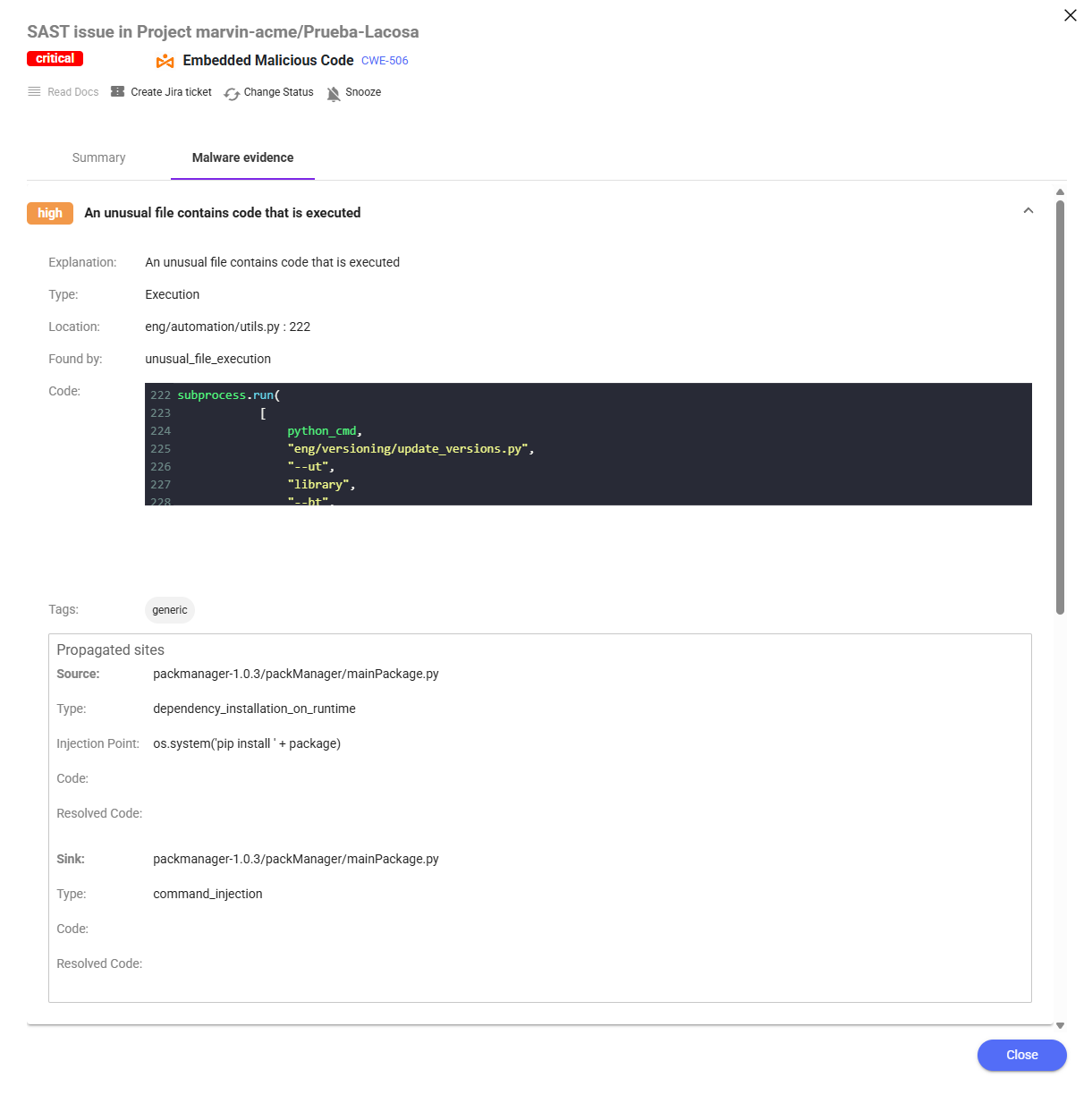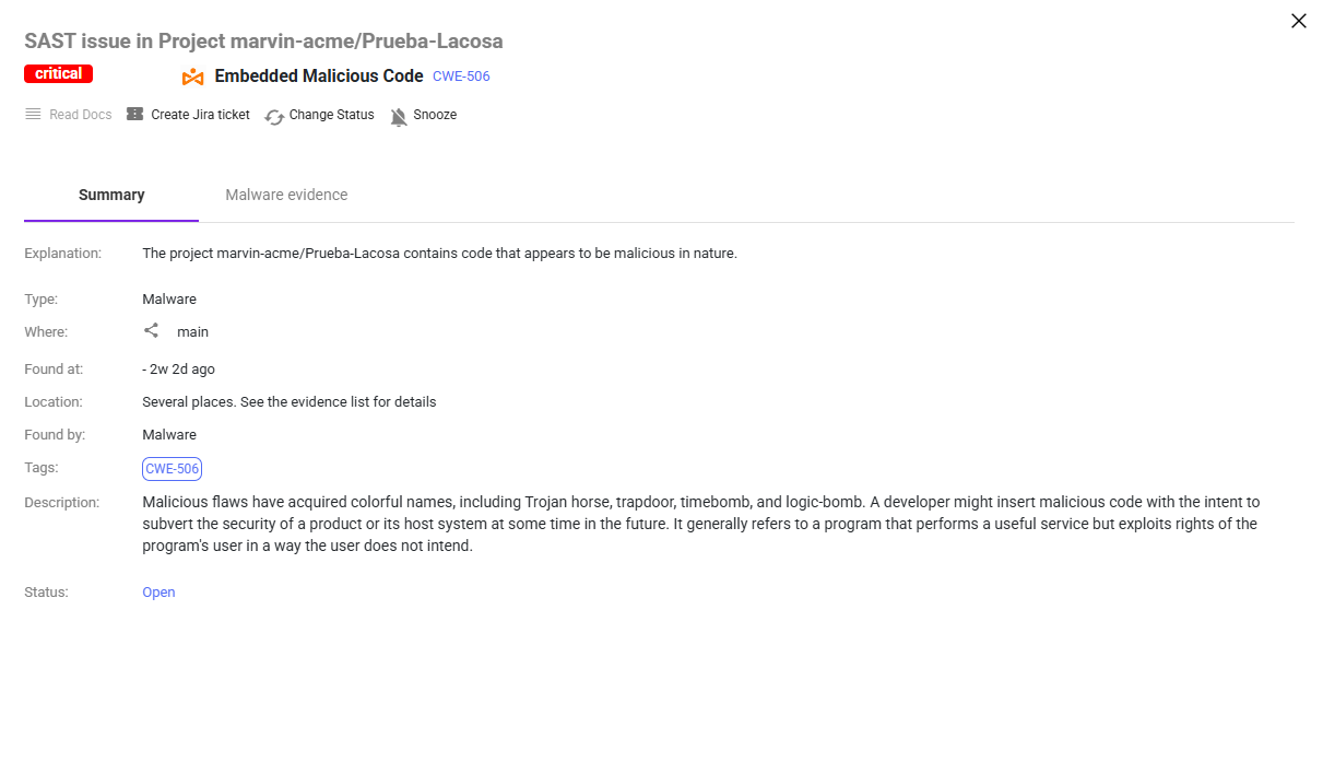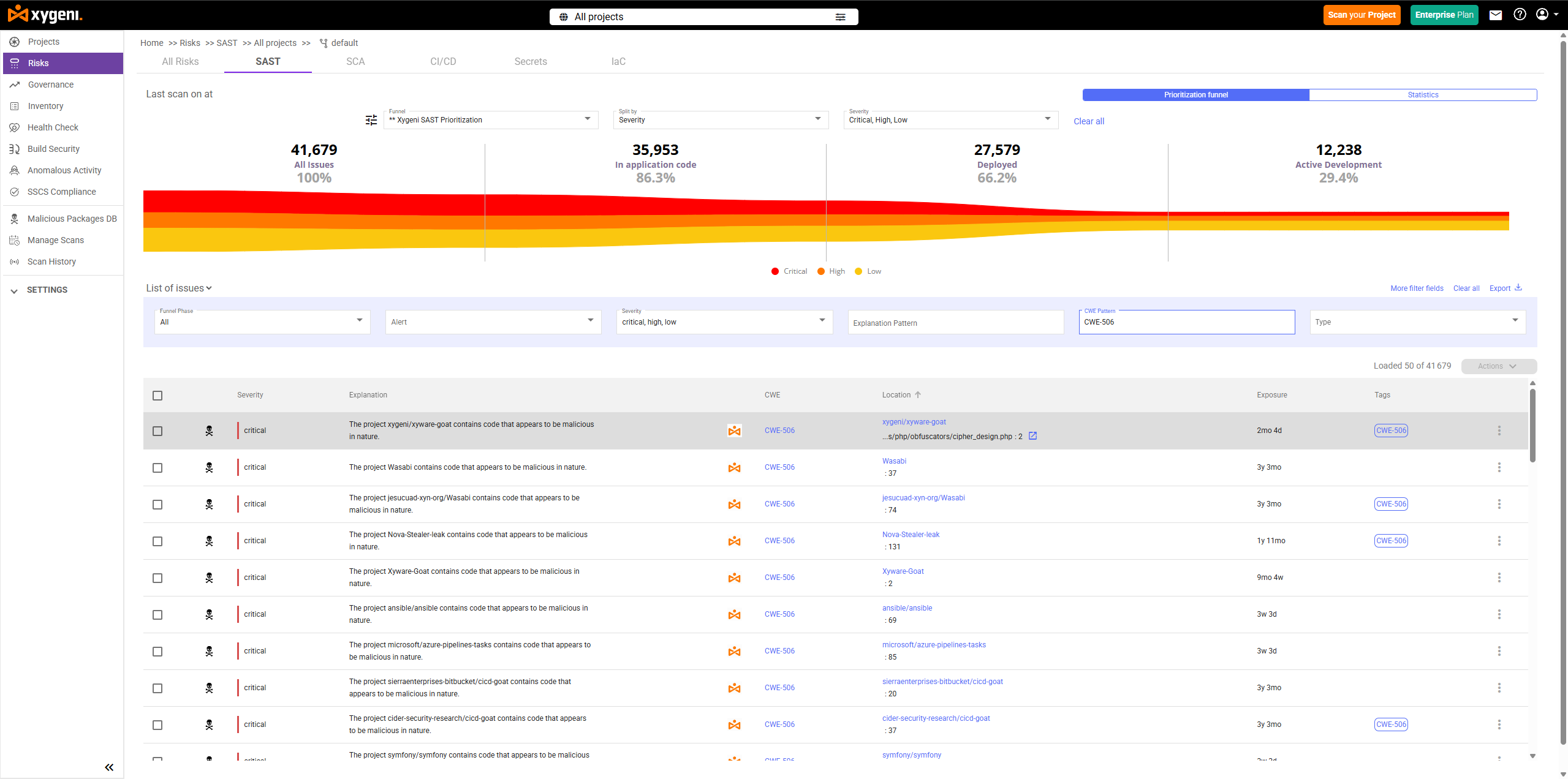 To only view malicious SAST issues in the table, enter the CWE-506 filter pattern